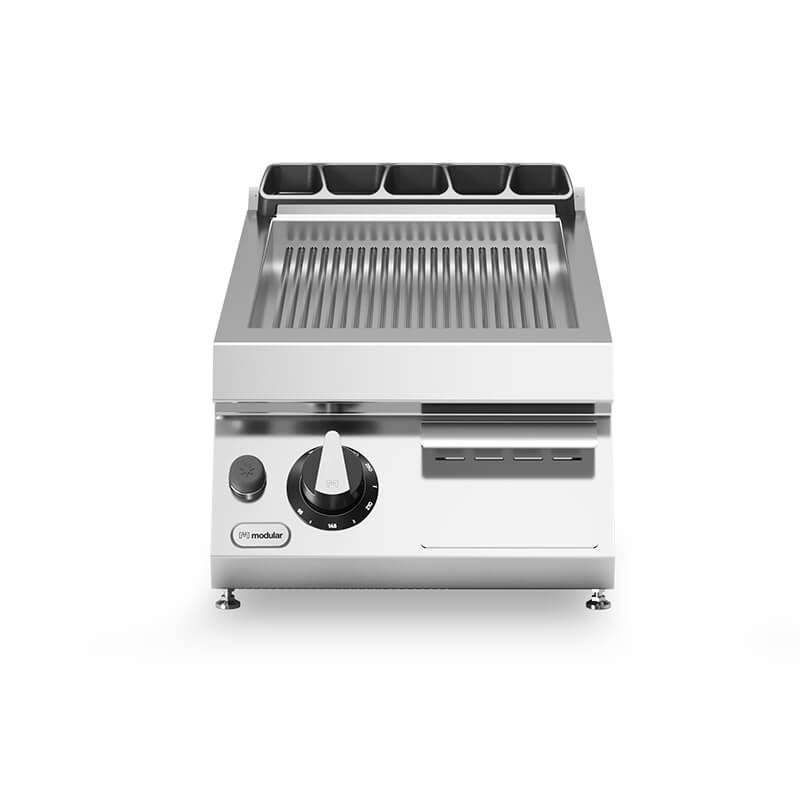 Εστία-πλατό αερίου 10,5kW μονή ραβδωτή επιφ. χρωμίου επιτραπ. R90/40FTG/CR/T ROC900