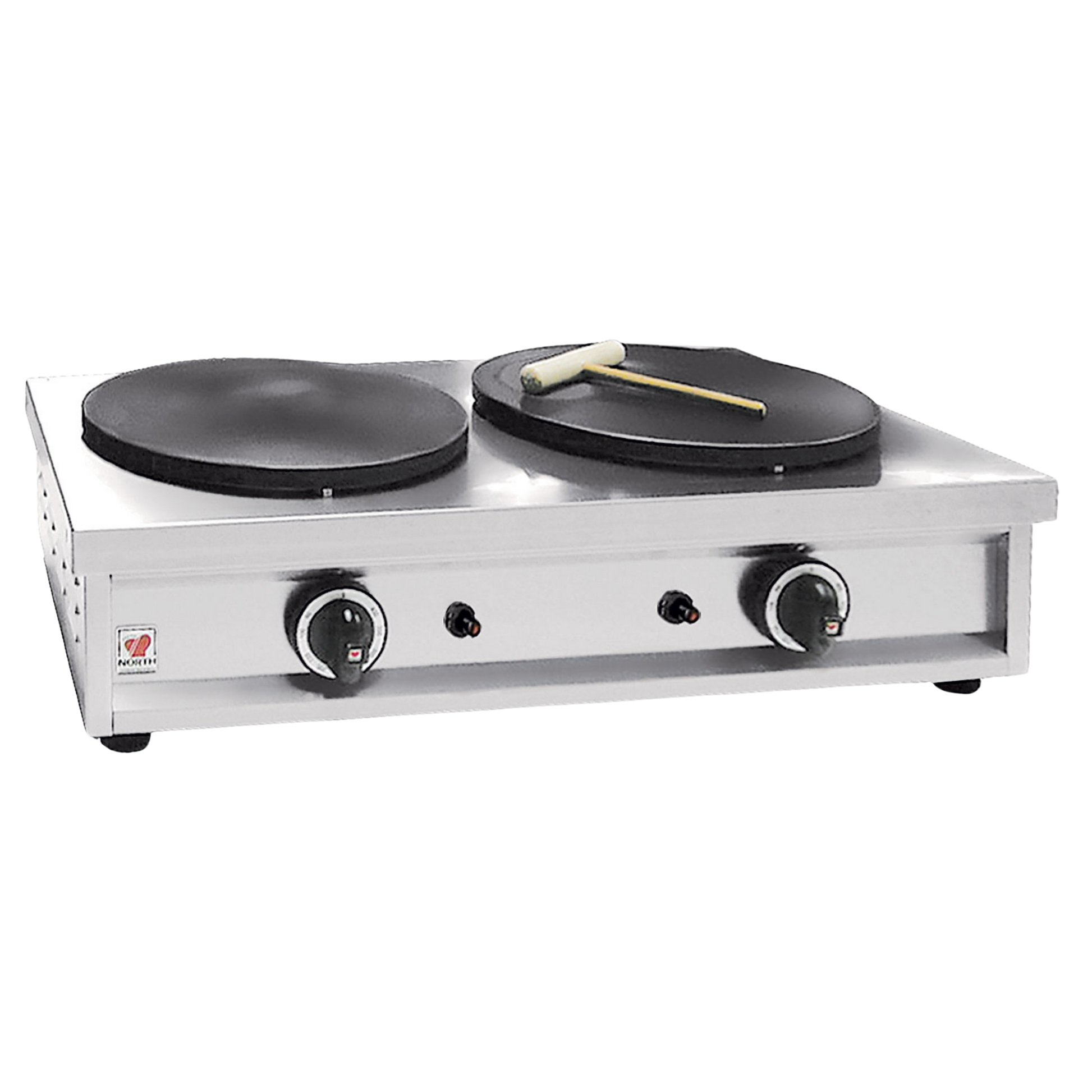 Η κρεπιέρα αερίου αποτελείται από δύο εστίες βαρέος τύπου χυτοσίδηρο διαμέτρου 35 cm.